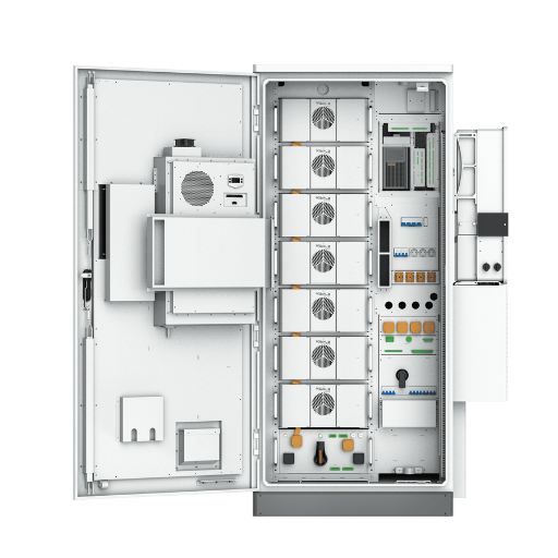 Dzięki możliwości przewymiarowania instalacji fotowoltaicznej (PV) do 200% i maksymalnemu prądowi wejściowemu DC 40 A, hybrydowy, szafowy magazyn energii zapewnia wysoką przepustowość (dużą moc) dla integracji wielkoskalowych systemów solarnych.